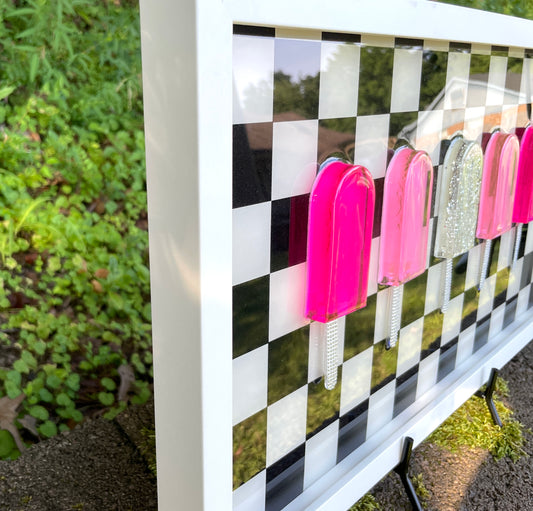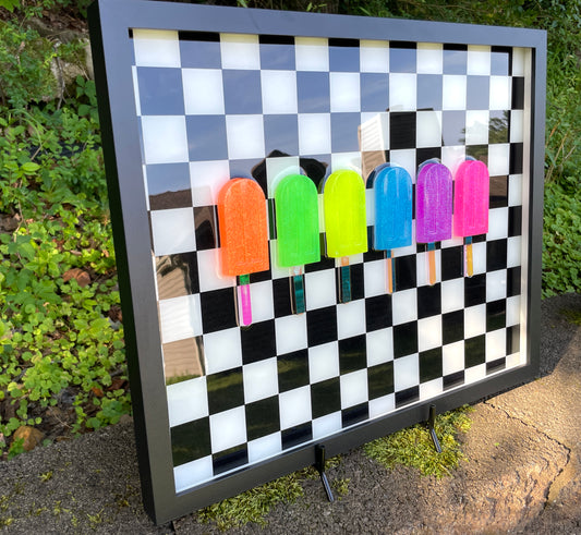 Neon Glitter Popsicles 3D Resin on Check Framed Art - 6 Pops
