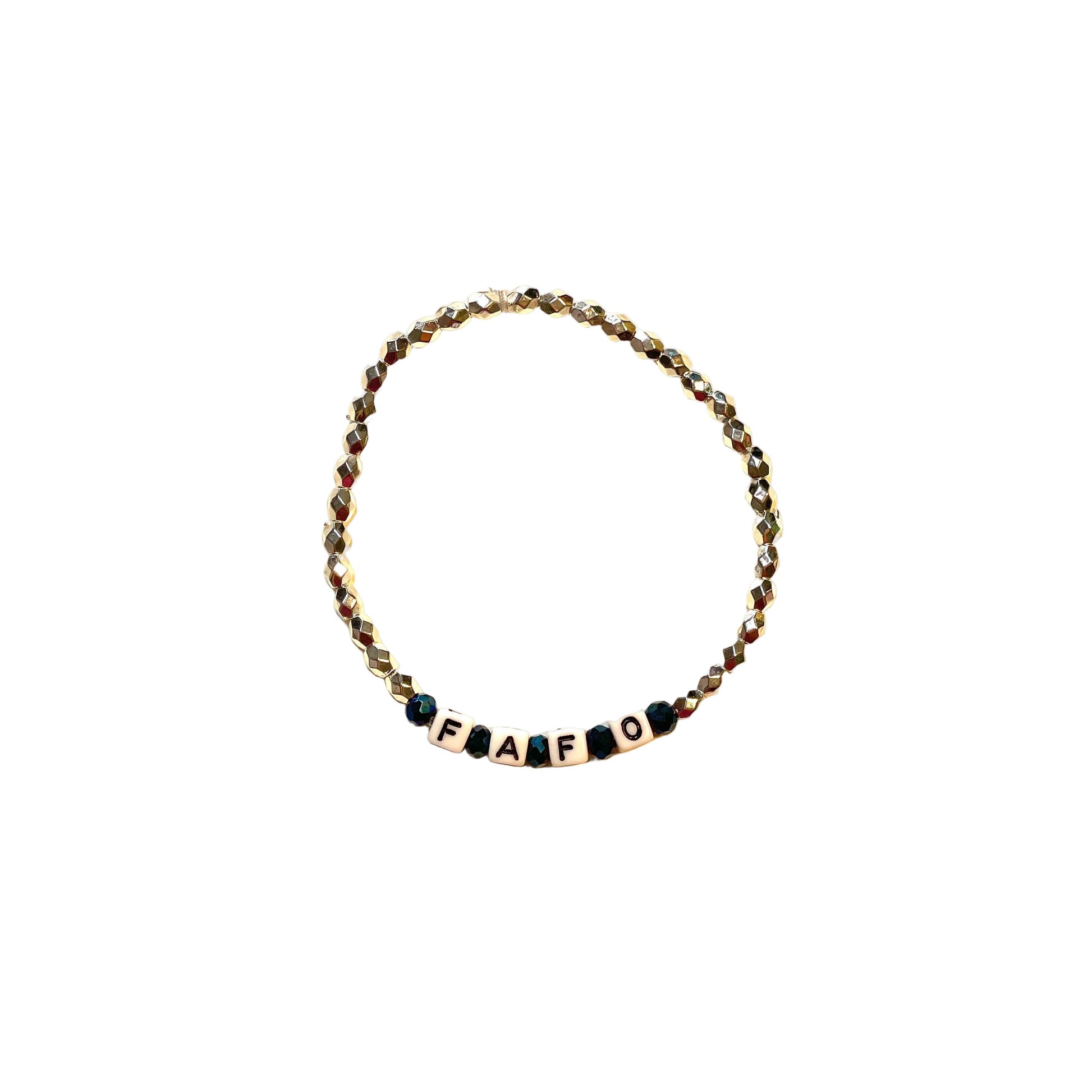 A fun bracelet with a whimsical twist! “F. A. F. O.” reminds you that you or others can F*&%# Around, and Find Out - play stupid games, win stupid prizes… Sometimes sweet, sometimes sassy. . . Friendship bracelets are an updated way to remind yourself of important key words/concepts throughout your day with a quick look at your wrist.. Beads are strung on a strong, stretchy cord.