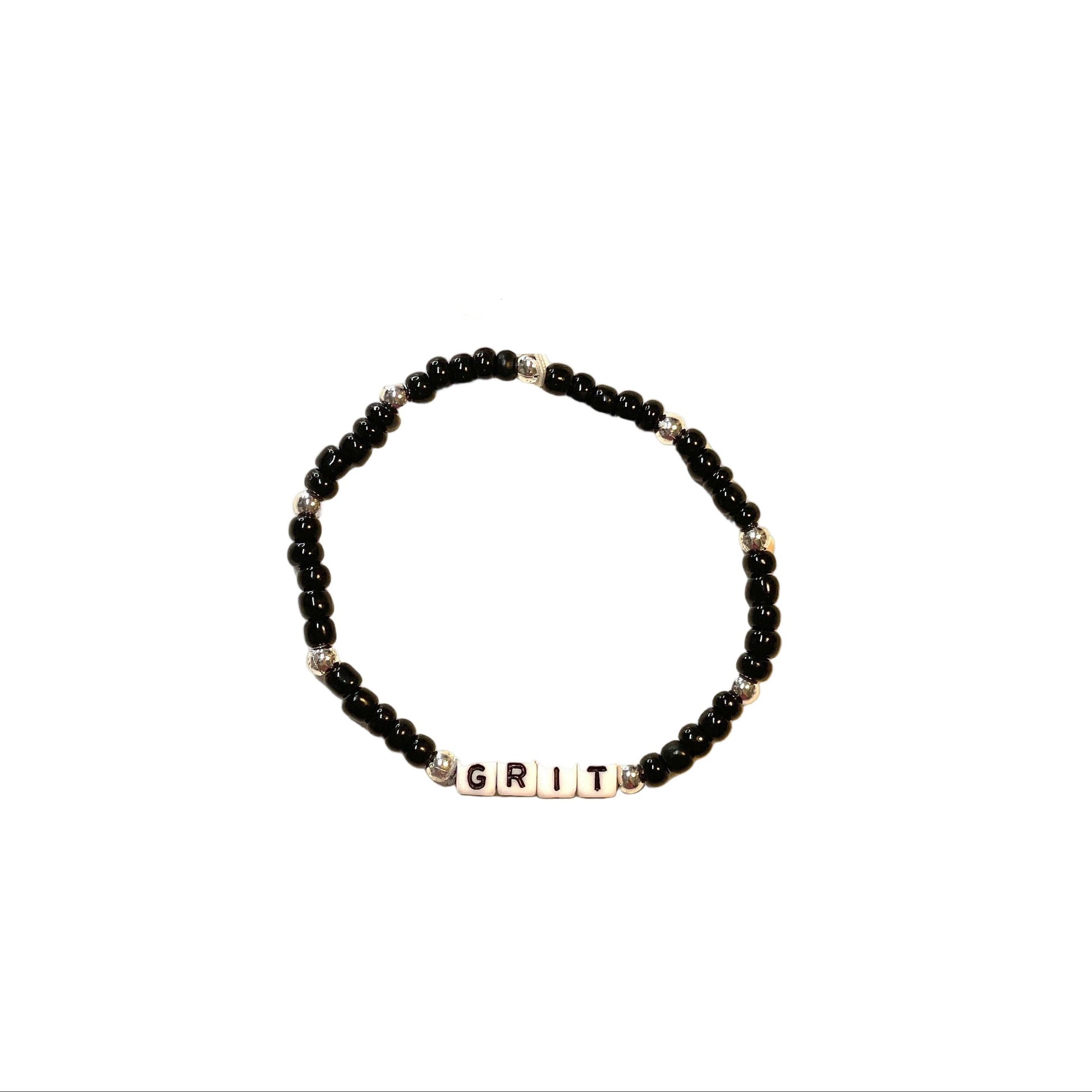 A fun bracelet with a whimsical twist! “Grit” - there are times when you need to be reminded to dig deep within yourself and find the grit - to be able to add some grit to the situation to achieve a foothold- to achieve traction …Sometimes sweet, sometimes sassy. . . Friendship bracelets are an updated way to remind yourself of important key words/concepts throughout your day with a quick look at your wrist.. Beads are strung on a strong, stretchy cord.