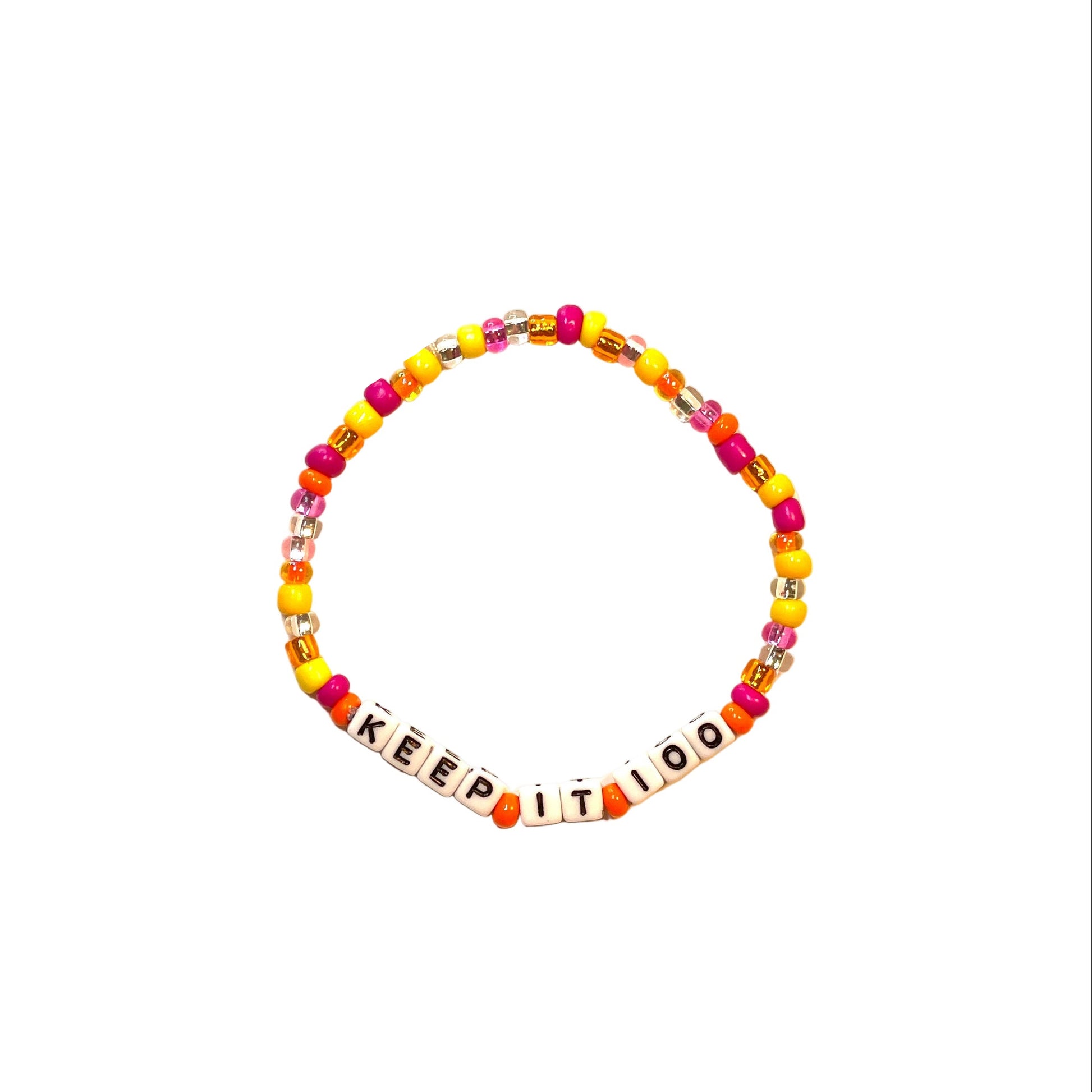A fun bracelet with a whimsical twist! “Keep It 100” - whether you just need a reminder to give 100% in everyday OR a nod to your favorite celebrity couple …Sometimes sweet, sometimes sassy. . . Friendship bracelets are an updated way to remind yourself of important key words/concepts throughout your day with a quick look at your wrist.. Beads are strung on a strong, stretchy cord.