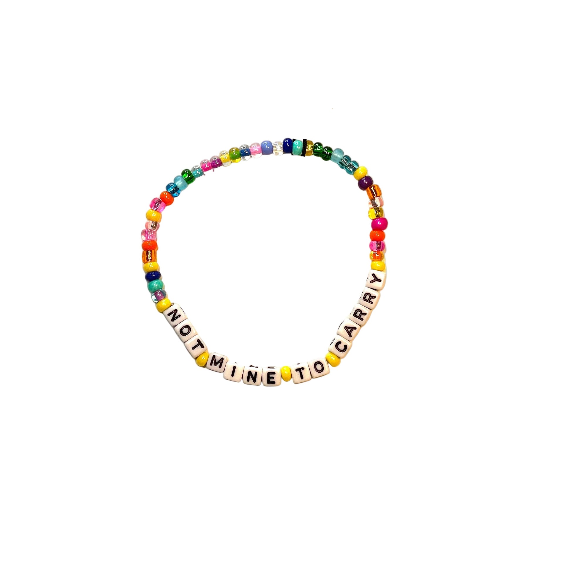 A fun bracelet with a whimsical twist! “Not Mine To Carry” reminds you that not everything is for you to worry about… Sometimes sweet, sometimes sassy. . . Friendship bracelets are an updated way to remind yourself of important key words/concepts throughout your day with a quick look at your wrist.. Beads are strung on a strong, stretchy cord.